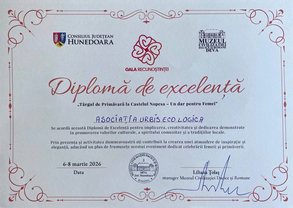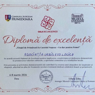Paticiparea la Târgul de Primăvară – un dar pentru femei, desfășurat la Castelul Nopcsa (Hunedoara), în perioada 6-8 martie 2026, a adus Asociației noastre premiul de excelență pentru implicarea, dedicarea și creativitatea demonstrate în promovarea valorilor culturale.